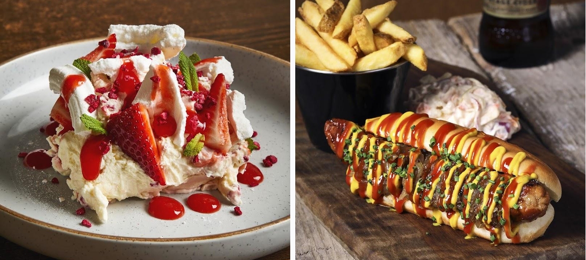 The Village serves a wide variety of dishes from breakfast to dinner, including burgers, mains, sides, desserts, and a children's menu. Highlights include Cajun Cream Chicken Pasta, Fish & Chips, and Sticky Toffee Pudding.
